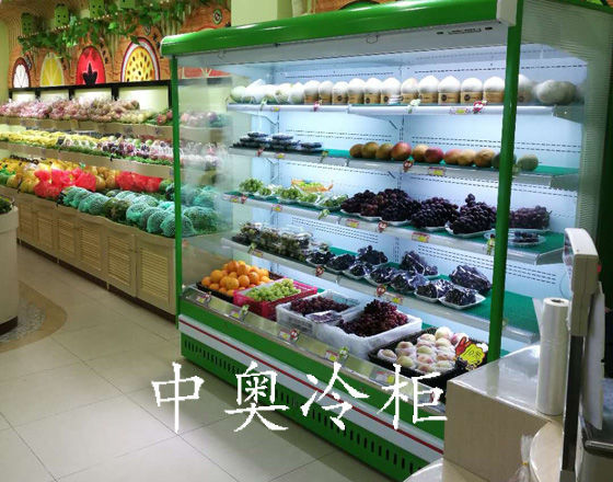 案例名稱:福田水果屋2米綠色風幕柜中奧水果保鮮柜
